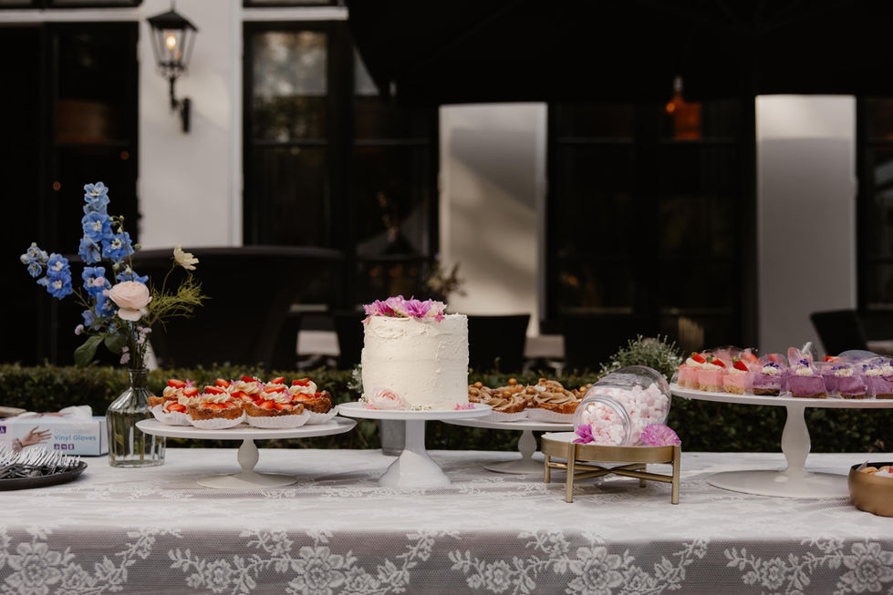 Een sweettable is dé eyecatcher van jullie bruiloft of event: een luxe, stijlvol aangeklede tafel vol verfijnde zoetigheden. Van aansnijdtaart tot macarons, cheesecake bites van vers fruit en chocolade aardbeien – voor iedereen is er iets lekkers. Gasten kunnen vrijblijvend genieten, voor ieder wat wils.